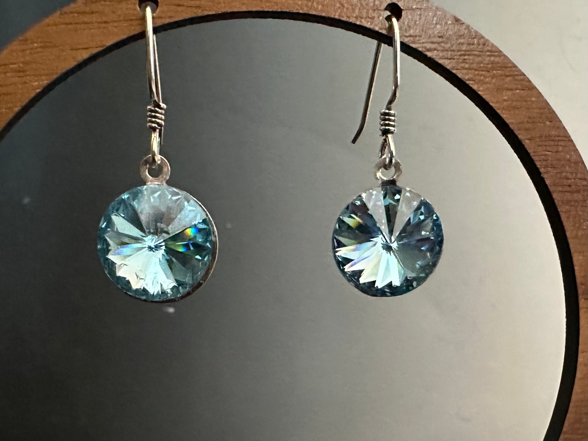 Brilliant swavorski crystals hang from sterling silver perfect balance earwires