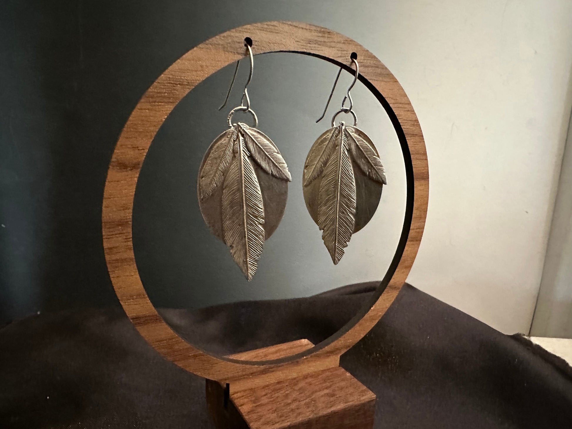 Artisan Feather sterling silver statement earrings